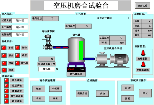 The equipment is mainly composed of measuring and controlling platform, pneumatic system, inverter control system, temperature sensor transmission system, pressure sensor transmission system and electric signal processing system.