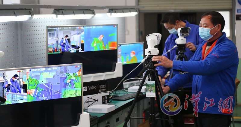3月9日,在襄陽國鐵機電股份有限公司,工作人員正在調(diào)試熱成像快速測溫系統(tǒng)。本公司2月23日成功研發(fā)了熱成像快速測溫系統(tǒng),該系統(tǒng)可實現(xiàn)對進出人員體溫檢測、人臉識別、實名制驗證和考勤管理,可同時對30-50人進行體溫快速檢測、篩查、報警。在疫情防控期間,本公司一天能夠生產(chǎn)30多臺設(shè)備,目前用于全市的疫情防控指揮部門、部分醫(yī)院及復(fù)工復(fù)產(chǎn)的企業(yè),下一步將投入到學(xué)校。